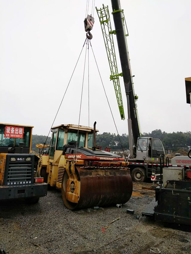 路橋公司雙鋼輪壓路機(jī)裝車